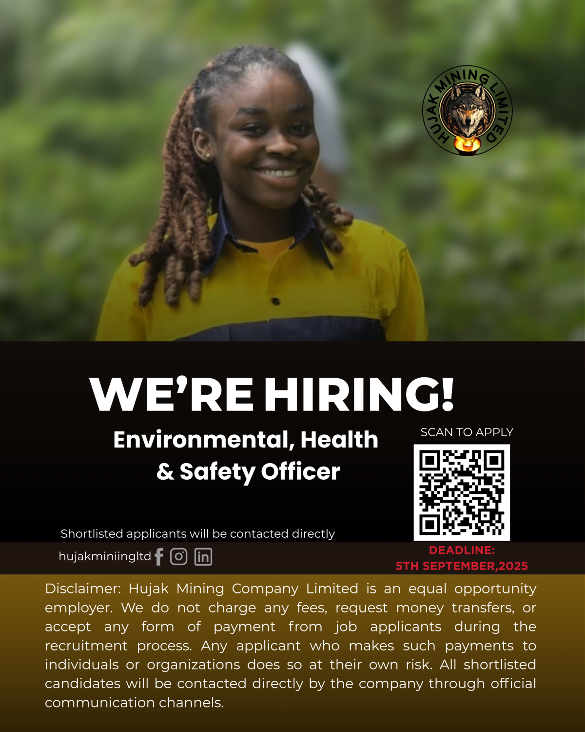 At Hujak Mining Limited Company, we are committed to safe, responsible, and sustainable mining practices. We are seeking a dedicated Environment, Health & Safety (EHS) Officer to ensure compliance with safety standards, environmental regulations, and company policies. This role is essential in protecting the well-being of employees, contractors, and the communities where we operate.