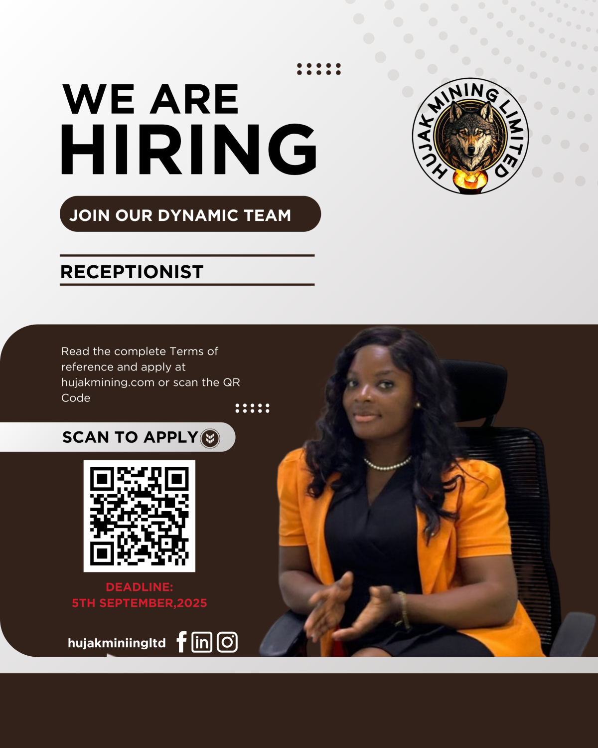At Hujak Mining Limited Company, we pride ourselves on professionalism and excellence in all we do. We are looking for a friendly, well-organised, and proactive Receptionist to be the first point of contact for our clients, partners, and visitors. This role is central to creating a welcoming environment and ensuring smooth day-to-day office operations.